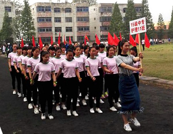 上午9:00,伴随着激昂的《运动员进行曲》,护理学院教师方队和班级代表队依次有序入场。踏着整齐划一的步伐,面带笑容,声音嘹亮,护理学院的教师展现出良好的精神面貌和综合素质。