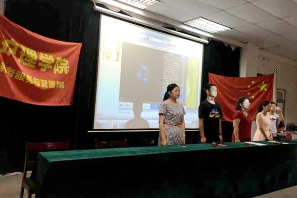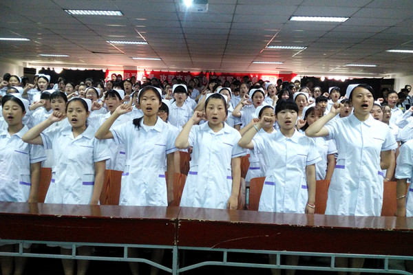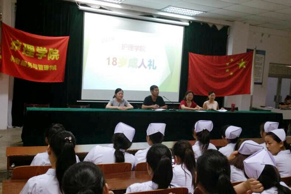 成人礼在《怒放的生命》激昂的旋律中拉开序幕。首先全体人员起立,奏《国歌》。随后,300余名护理学院18岁学生身穿护士服,戴着燕尾帽,高举右手许下青春誓言,以诚心对他人;以孝心对父母;以热心对社会;以忠心对国家是他们对18岁的承诺,标志着他们由未成年人向成年人转变。在成人礼仪式上,优秀学生代表贺玉玉同学进行发言。