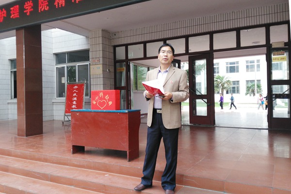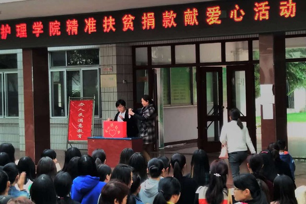 捐款活动现场,首先由护理学院张志友院长宣读了“捐款献爱心活动倡议书”,倡议全体教职员工和广大学生为贫困地区群众伸出援助之手,为贫困地区送去一份温暖。接着,在学院领导带头下,全体师生积极参与,慷慨解囊,共筹得款项 9698.80 元。