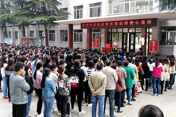 10月13日下午,为积极响应我院“为栾川县扶贫定点村捐款献爱心”的倡议,护理学院师生代表齐聚学校大门前广场,举行扶贫日捐款现爱心活动。
