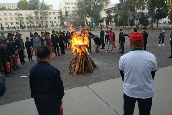 消防安全演练活动由三部分组成,分别为消防装备展示、安全教育、消防器材灭火体验。保卫处副处长田应功在现场对参加演练的人员进行了消防实操培训,讲解了手提式干粉灭火器使用方法、突遇火灾安全教育及注意事项。现场参与人员在保卫处老师的专业指导下,练习使用灭火器使用方法。讲解过后进行了消防实操演练,20余名同学在保卫处老师指导下,手持灭火器材实施了扑灭明火实操,真实感受了灭火器的灭火效果。