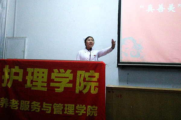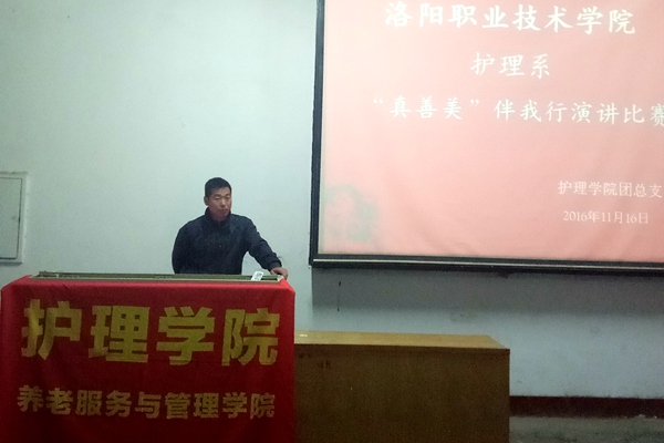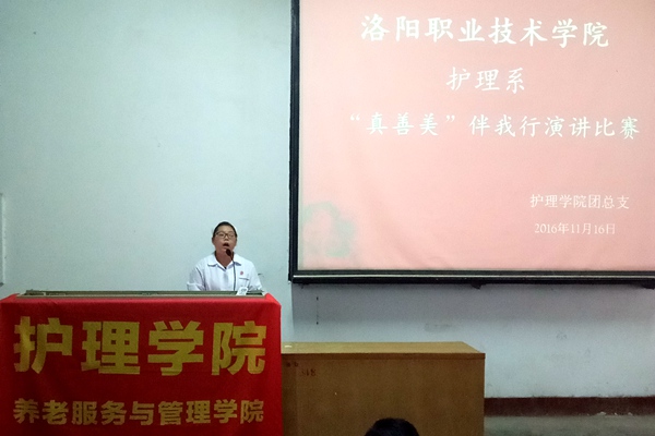 11月16日下午,护理学院在红山校区阶一南教室举行“真善美“演讲比赛决赛,40名比赛选手、护理学院党总支副书记尚艳芳、学工办各位辅导员老师和学生会主要干部参与了此次活动。