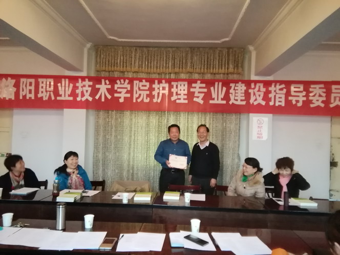 讨论过后,孙建勋副院长代表洛阳职业技术学院向各位委员们颁发了聘书并合影留念。