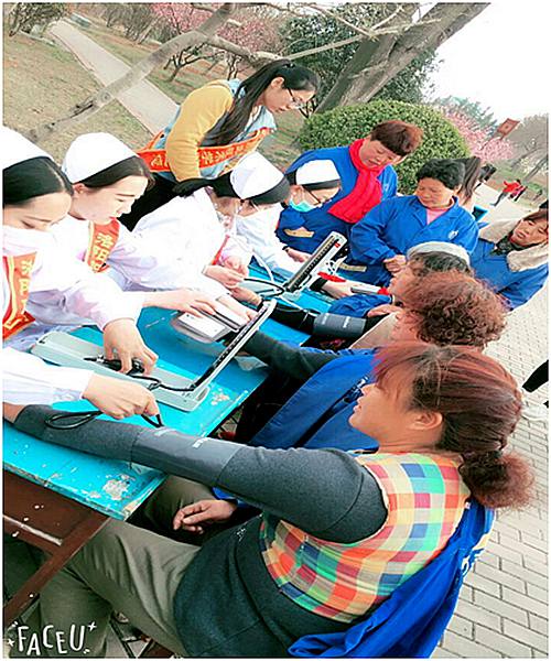 3月16日下午,护理学院组织团委办公室的团干部在洛阳市机场路航空港牡丹园进行学雷锋爱心义诊活动。
