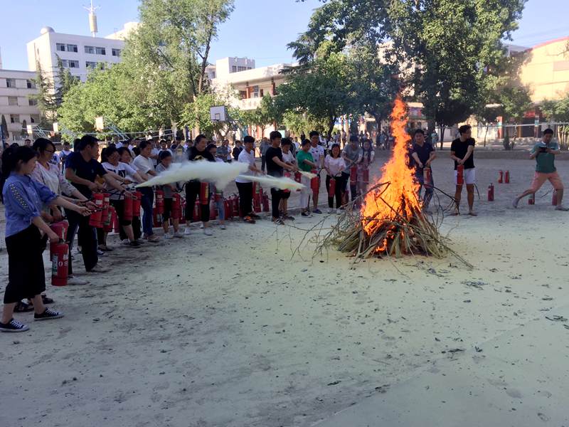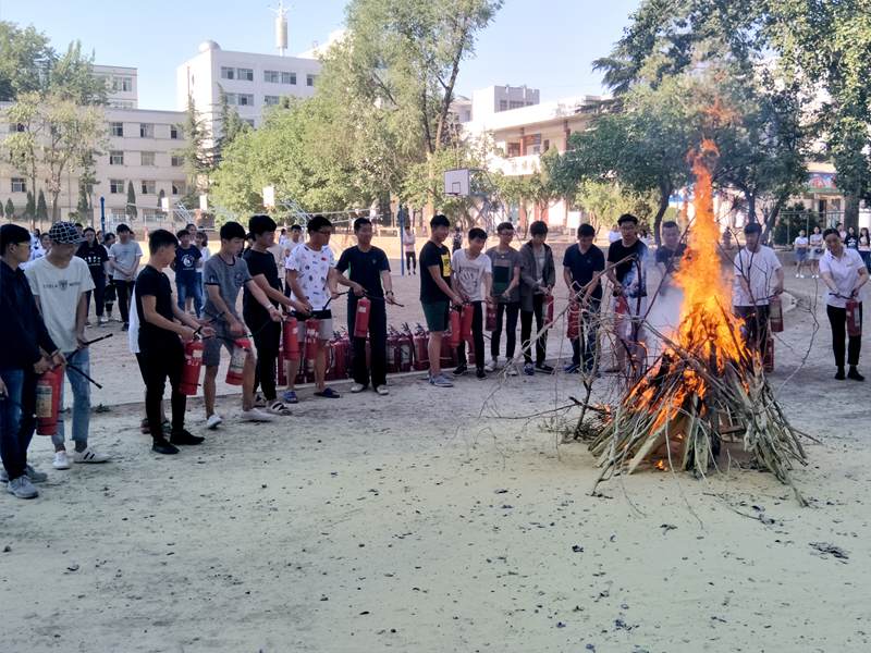 消防安全演练活动由三部分组成:消防装备展示、安全教育、消防器材灭火体验。保卫处处长田应功科长在现场对参加演练的人员进行了消防实操培训,讲解了手提式干粉灭火器使用方法、突遇火灾安全教育及注意事项。讲解过后进行了消防实操演练,40余名同学代表在保卫处老师指导下,手持灭火器材实施了扑灭明火实操,真实感受了灭火器的使用方法。