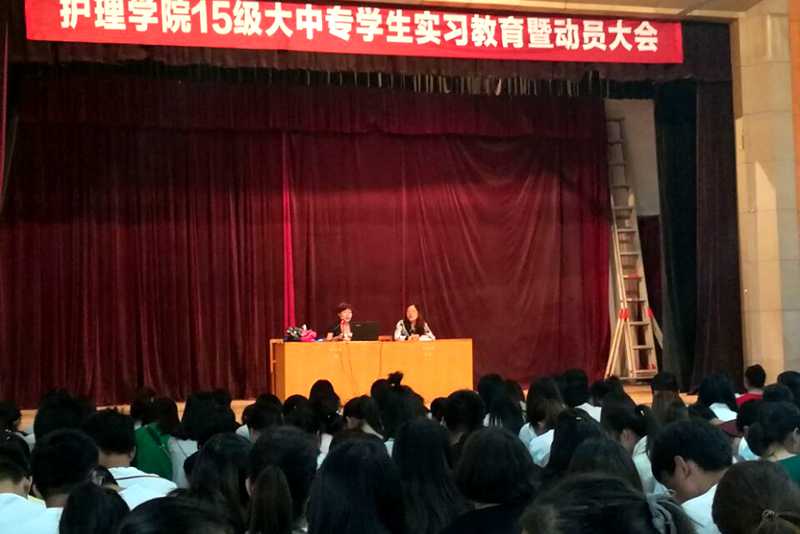 6月4日上午,护理学院组织15级护理专科及助产班共20个班级700多名即将进入临床实习的学生于红山校区参加了实习动员暨教育大会。护理学院党总支副书记尚艳芳,河南科技大学第二附属医院护理部主任谷主任、刘主任出席本次大会,会议由尚书记主持。