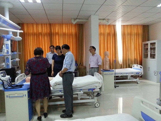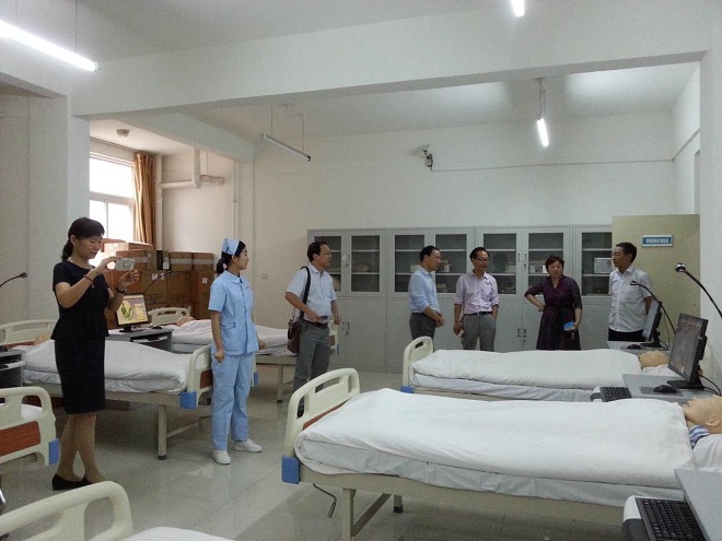 与会专家首先参观了我院护理实训中心,对护理实训中心的建设给予了充分肯定,并指出应尽可能开放实训室,充分利用网络技术进行训练及考核,为学生创造更多的实训机会。