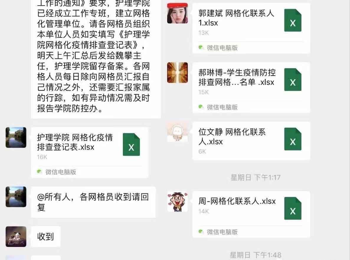 以学生平安健康为疫情防控工作核心,学院辅导员建立学生疫情防控排查网格化管理系统,第一时间形成防控疫情的有效合。
