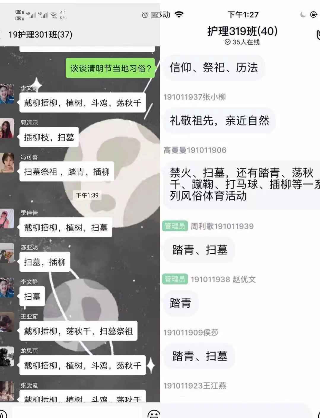 本次团课以“清明节的由来、清明节的习俗以及致敬英雄”为主要内容。