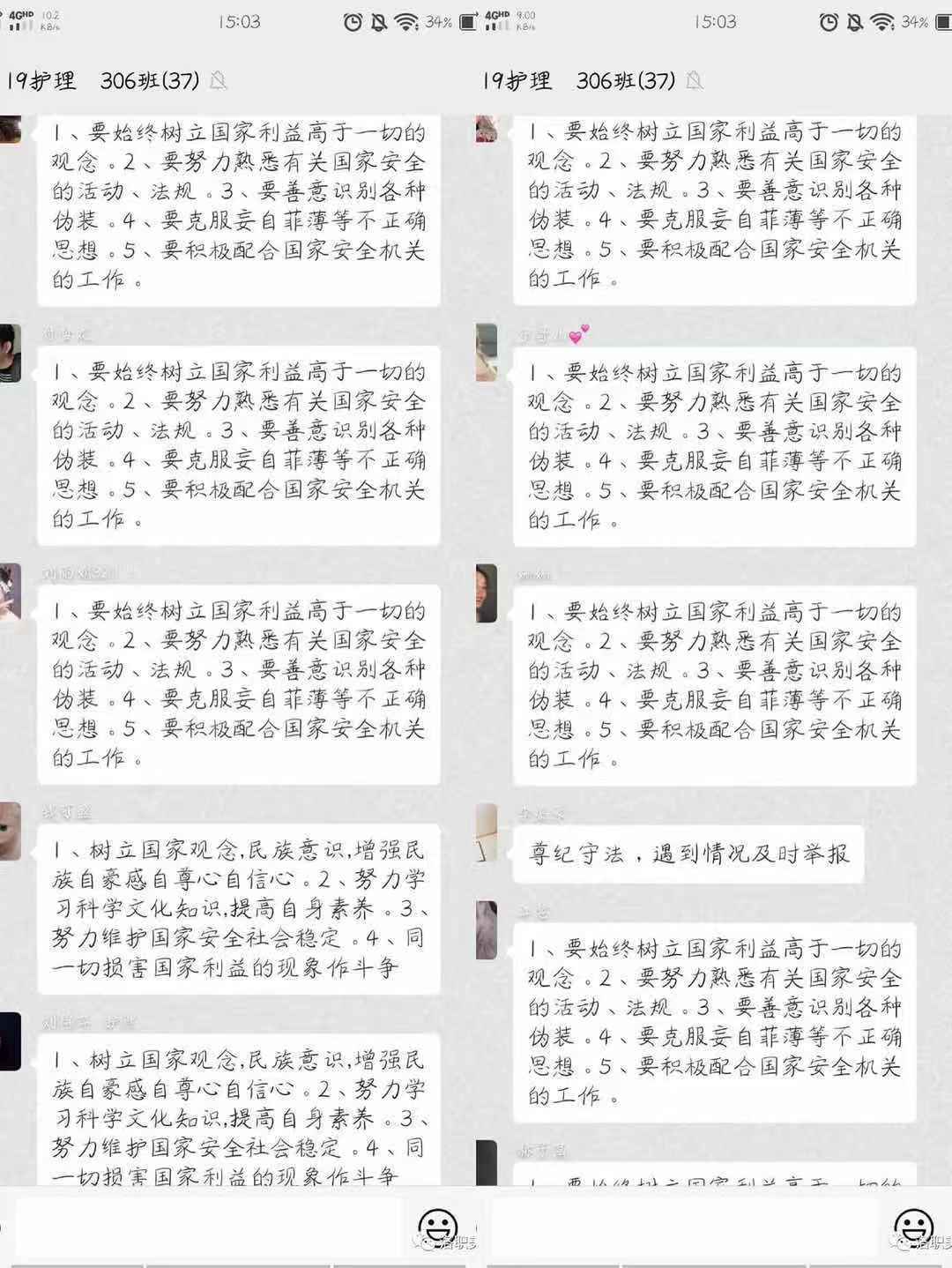 在4月16日下午,护理学院开展了以“国家安全教育”为主题的线上团课,由各班团支书组织开展。