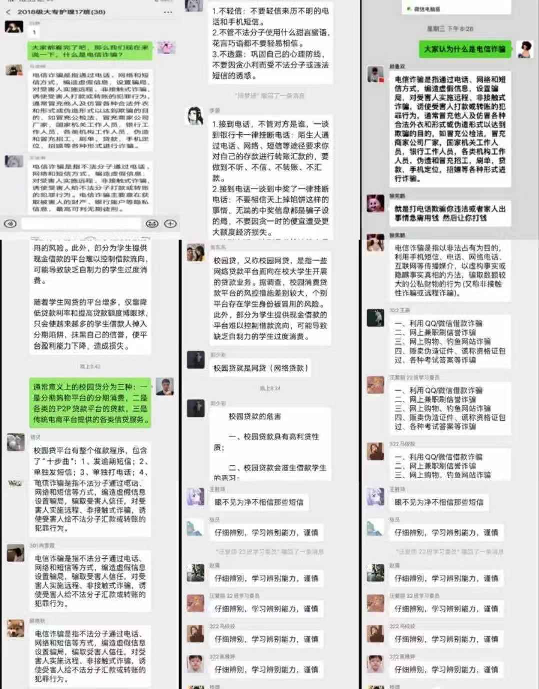 为了引导广大青年学生珍爱信用、理性借贷、不负信任,提高学生征信意识、金融意识、风险意识、法律意识,增强当代大学生的责任感,护理学院在全体学生中开展了“诚信教育”主题班会活动。帮助学生分析电信诈骗以及网贷的特点及常用手段,教育学生如何识别电信诈骗,并对如何防范电信诈骗以及不幸遭遇了电信诈骗时的紧急补救操作流程进行了具体解说。