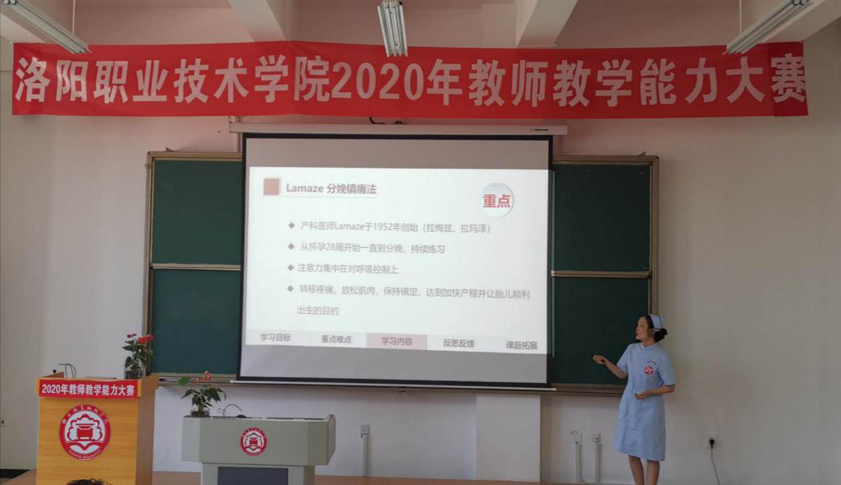 2020年7月20日,洛阳职业技术学院2020年教师教学能力大赛决赛在伊滨校区成功举行,护理学院朱前进老师和李雅雪老师分别获得理工组一等奖和三等奖。