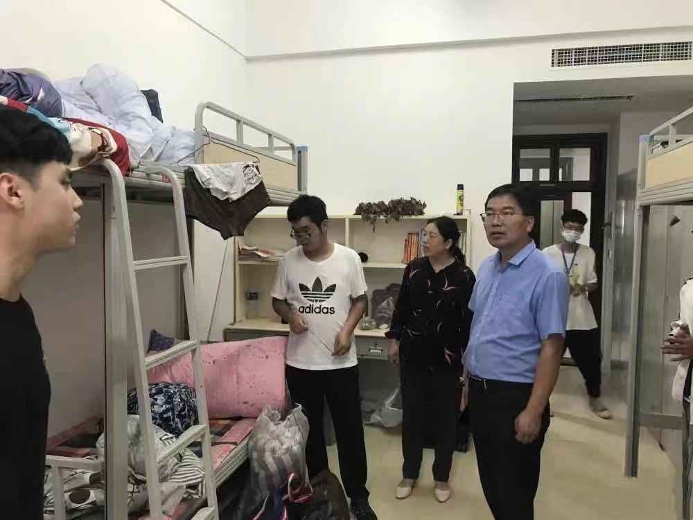 护理学院院长张志友,副院长尚艳芳、副院长刘书莲一同深入学生宿舍了解我院学生宿舍安顿情况及入校率,就学生寝室消毒、卫生等问题提出整改要求,关心行动不便学生的住宿问题。