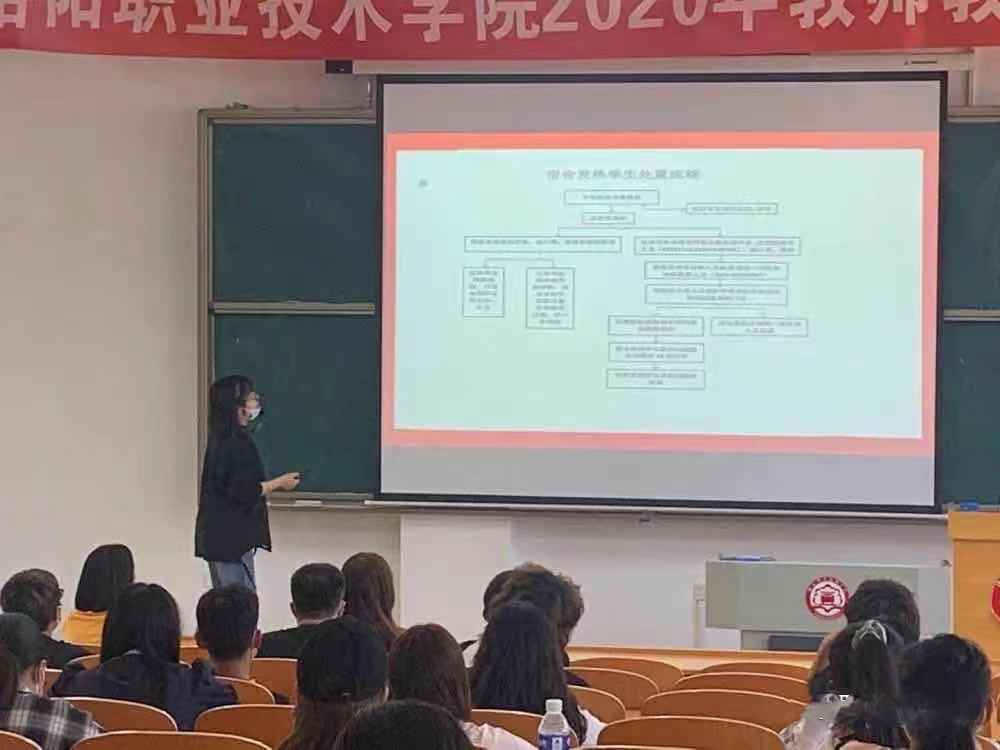 首先王岩岩老师针对学校区域的防控知识进行培训。其中重点讲到宿舍防护、教室防护、餐厅防护,并强调在宿舍、教室、餐厅应注意的事项以及相对应场所发热学生处置流程。与此同时,针对校医院发热就诊流程也对大家进行了讲解。学校区域防控知识的培训主要是为了让学生在有发热情况下能够冷静处理、有序就诊,不恐慌不瞒报。