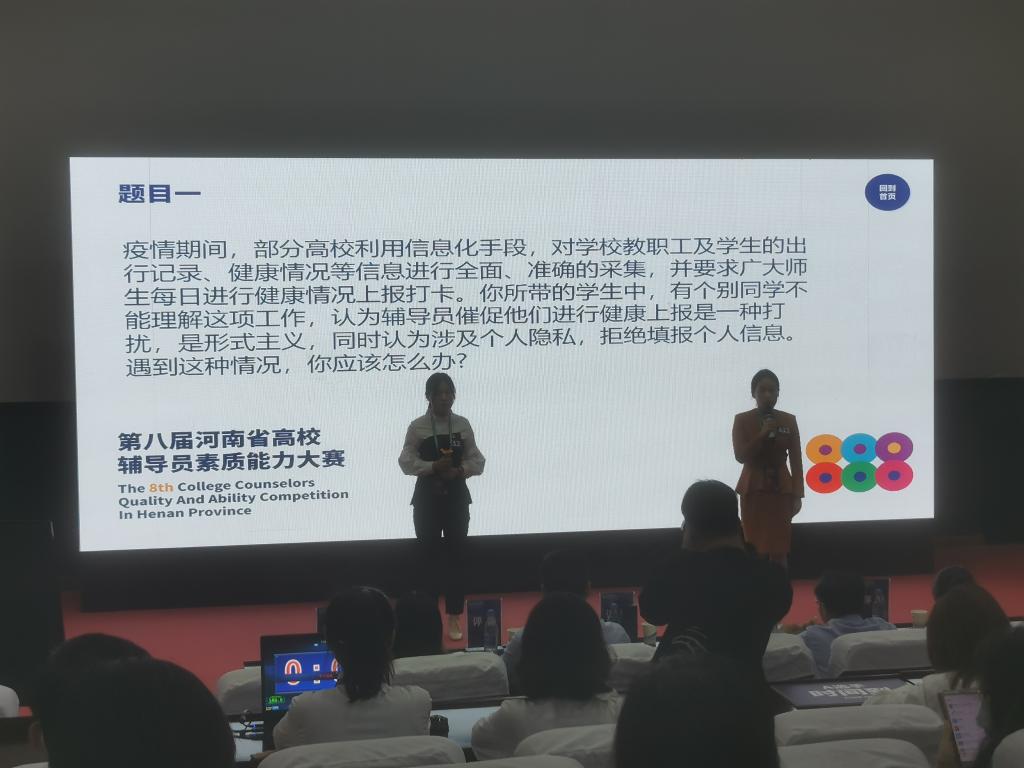河南省高校辅导员素质能力大赛两年举办一届,全省各高校辅导员在此同台竞技,切磋交流,综合考察了辅导员的语言表达、逻辑思维、心理辅导、思想教育、理论宣讲等多方面的知识和能力,全方位地展现了辅导员的个人素养、知识储备和专业技能,也展现了各高校辅导员队伍良好的精神风貌和过硬的综合素质。