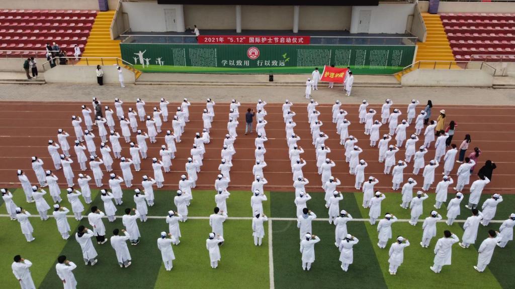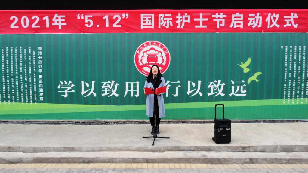 在2021年第110个“5·12”国际护士节来临之际,为了用实践行动学党史、颂党恩、跟党走,弘扬南丁格尔精神,传承护理文化,展示白衣天使风采,树立学生专业自豪感和荣誉感,学院学生处、团委、护理学院共同举办庆祝2021年“5·12”国际护士节系列教育活动。护理学院4月7日在操场举办系列活动启动仪式,由护理学院学工办主任韩珊妹主持,副院长尚艳芳、全体辅导员及100余名学生代表参与。