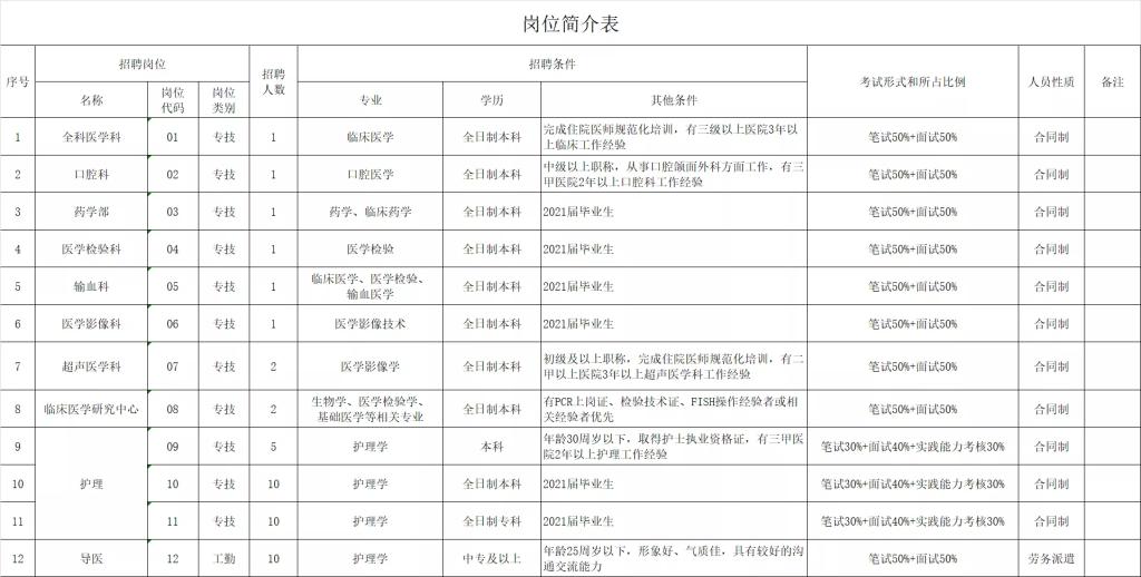 本次公开招聘的岗位、人数及相关要求等见《岗位简介表》