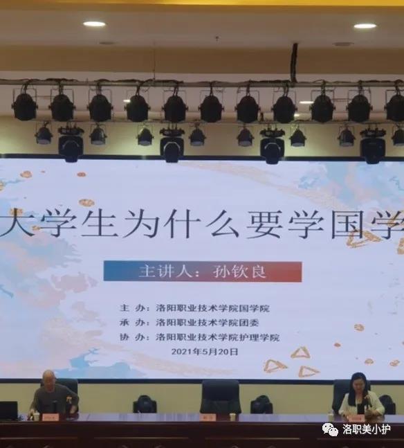 中国传统文化国学之大美,美不尽言。当你怀一颗赤子之心走近国学,感悟国学,体味国学,践行国学多时,你会蓦然发现,国学大美,其实已在你心里。洛阳职业技术学院于5月20日下午两点在大学生活动中心举办以“大学生为什么要学国学”为主题的国学讲座。此次讲座由学工办主任韩珊妹主持,校团委书记种洁和专家孙钦良出席本次讲座。