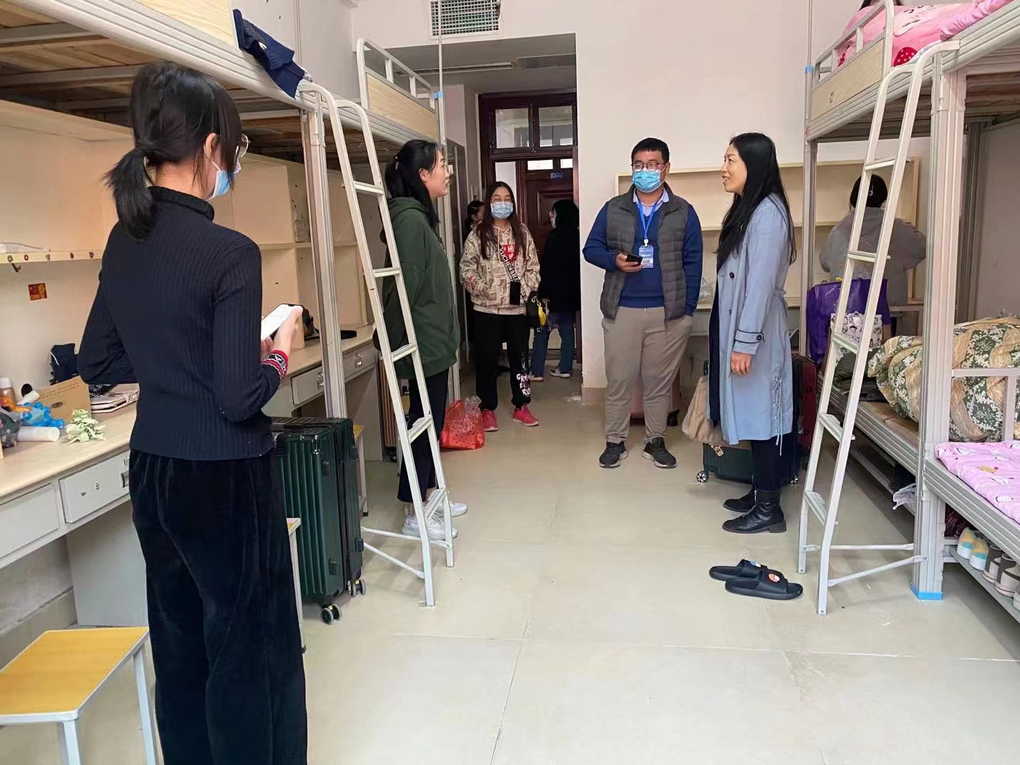 10月17日下午,我院副院长尚艳芳、学工办主任韩珊妹及全体辅导员前往新生宿舍看望2021级新生。