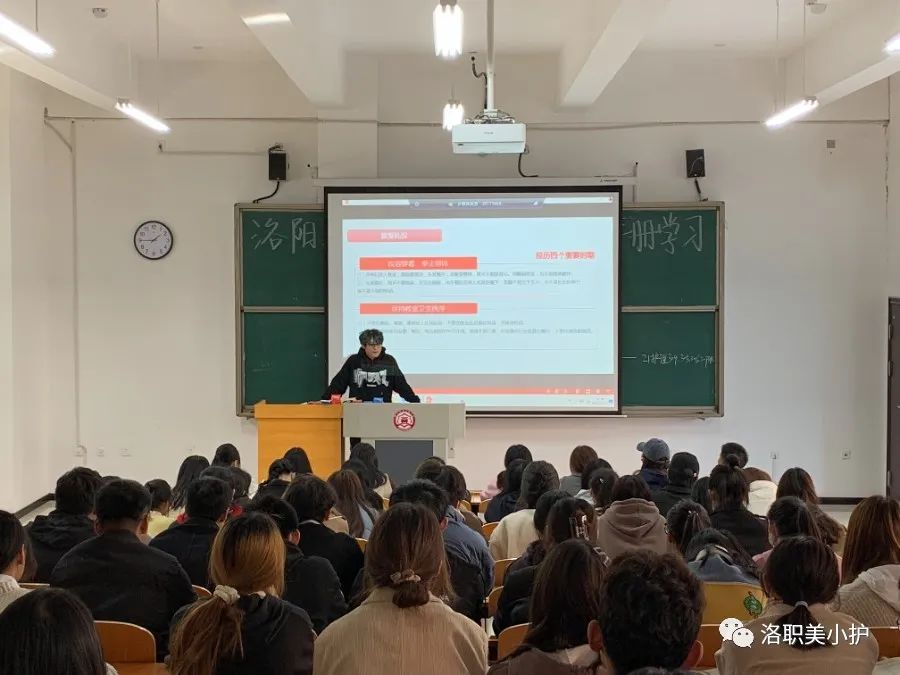 11月11日下午,护理学院开展了“ 校规校纪我学习,行为规范记心间”主题团课。”组织全体学生学习《洛阳职业技术学院学生手册》为学生们的日常行为提出了规范性要求,帮助学生们养成良好的行为习惯,本次团课由各班团支书组织开展,各班同学认真参与学习。