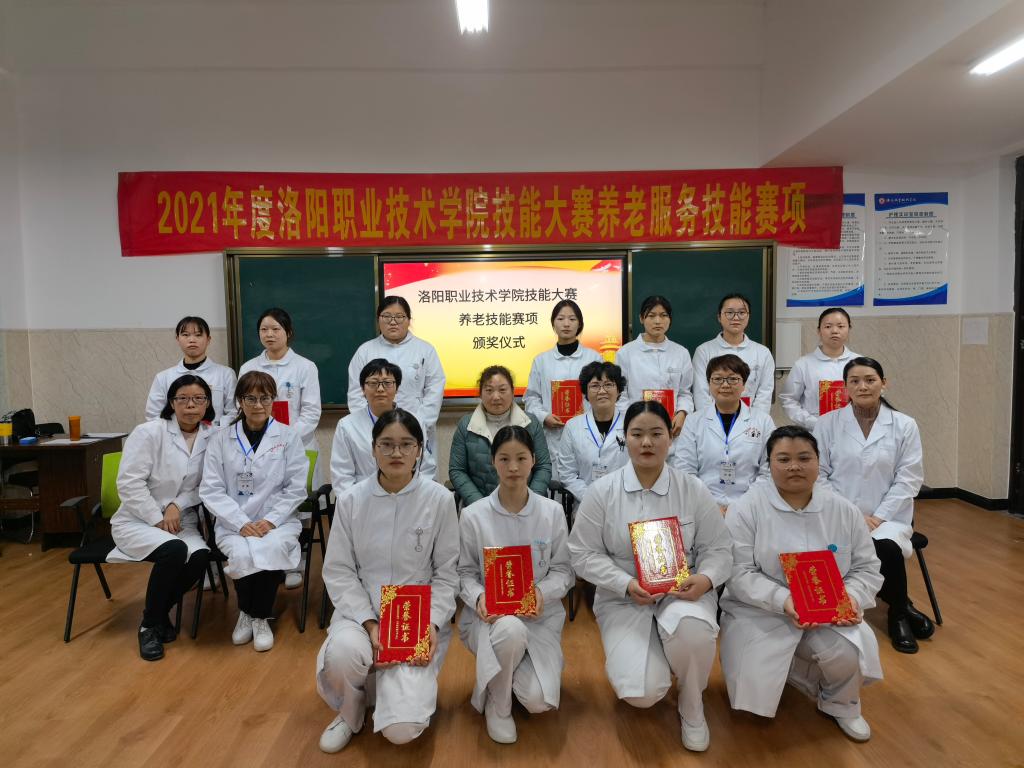 为提升老年服务与管理专业学生实践技能水平,培养厚人文、精技能、高度社会责任感的养老服务领域创新型专业人才。经过近两个月的筹备,2021年度洛阳职业技术学院技能大赛养老服务技能赛项于2021年11月20日成功举办。34名选手经过三个环节比赛,最终决出一等奖4名、二等奖7名、三等奖11名。