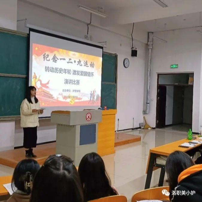 为纪念一二·九运动86周年,提高同学们的爱国之情及参加活动的积极性,宏扬一二·九运动精神。牢记历史,居安思危,不忘国耻。护理学院开展以“转动历史年轮·激发爱国情怀”为主题的演讲比赛。