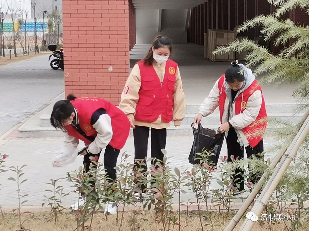 为响应我校文明校园创建号召,护理学院志愿服务部开展了“文明校园,你我共创”为主题的志愿服务活动,于2021年12月16日下午组织30名志愿者对1号实训楼及周边的绿化带进行清扫工作。