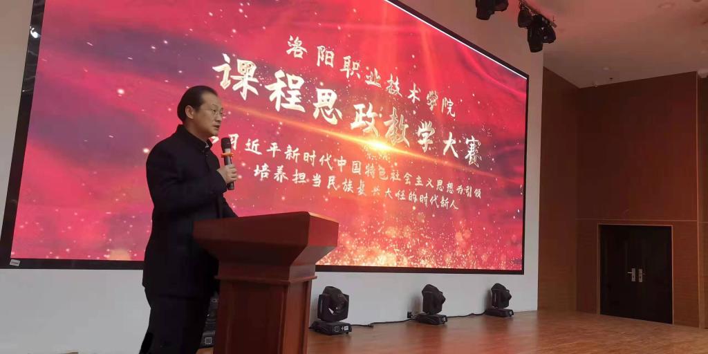 12月23日下午,我校高水平专业群教师在大学生活动中心二楼举办课程思政教学大赛,李保安副院长到场致辞。比赛邀请了河南科技大学物理工程学院副院长王辉教授、洛阳理工学院信息化技术中心主任李传锋教授、洛阳师范学院马克思主义学院硕士生导师朱先平教授,我校教学督导组组长杨荣跃副教授、医学院刘笑梦教授和曹姣玲教授、护理学院朱莉副教授作为评委出席。