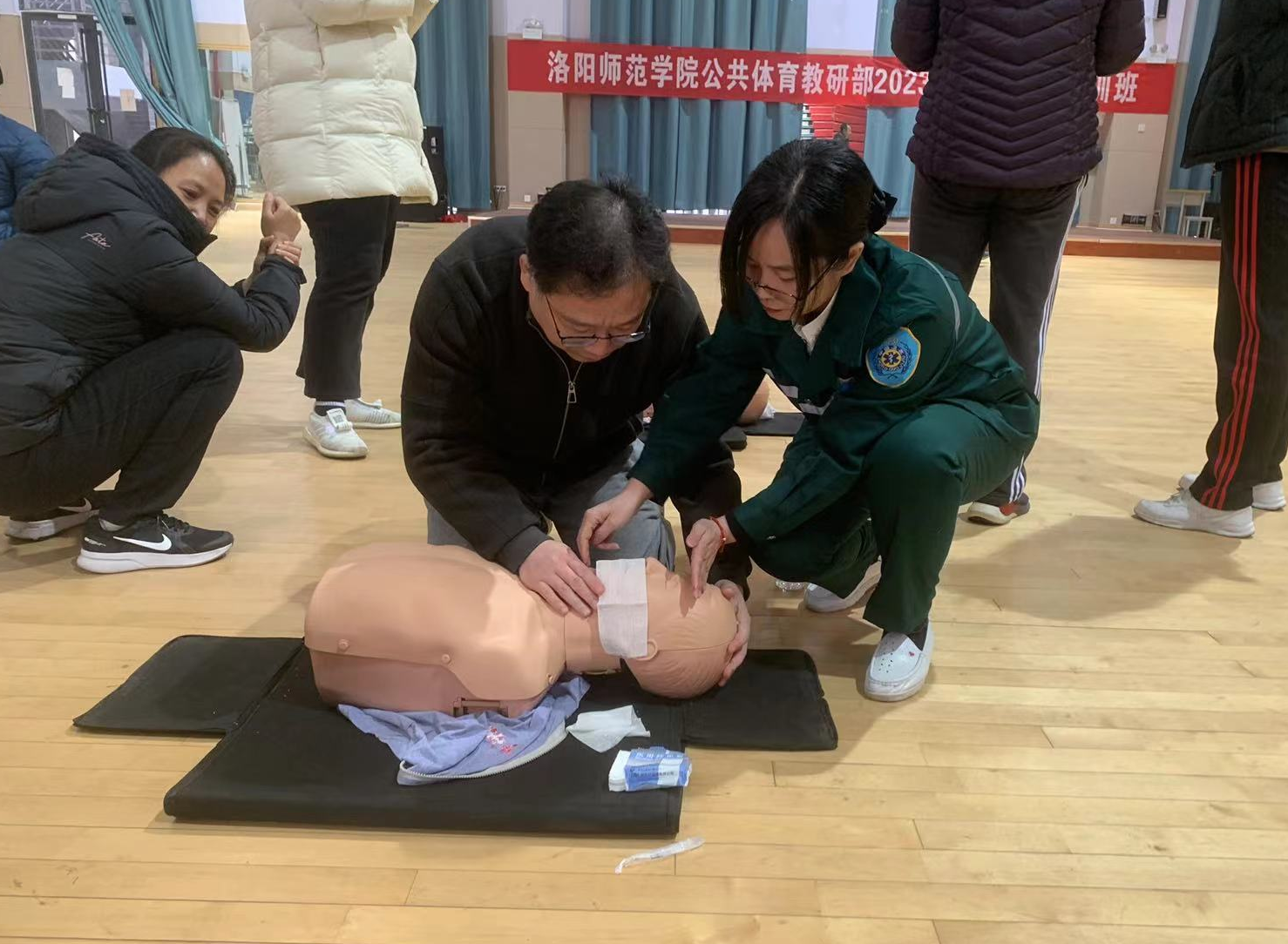 2月23日,为有效普及和提高广大教师应急救援知识和自救互救能力,受洛阳师范学院公共体育教研部党委书记赵文艳、主任赵明、副主任阴腾龙邀请,洛阳职业技术学院护理与康养学院副院长刘书莲以及教师王璐、吕文果、刘芳芳等对公共体育教研部全体教师和部分后勤人员40余人开展“心肺复苏”及“海姆立克急救法”应急救护培训。