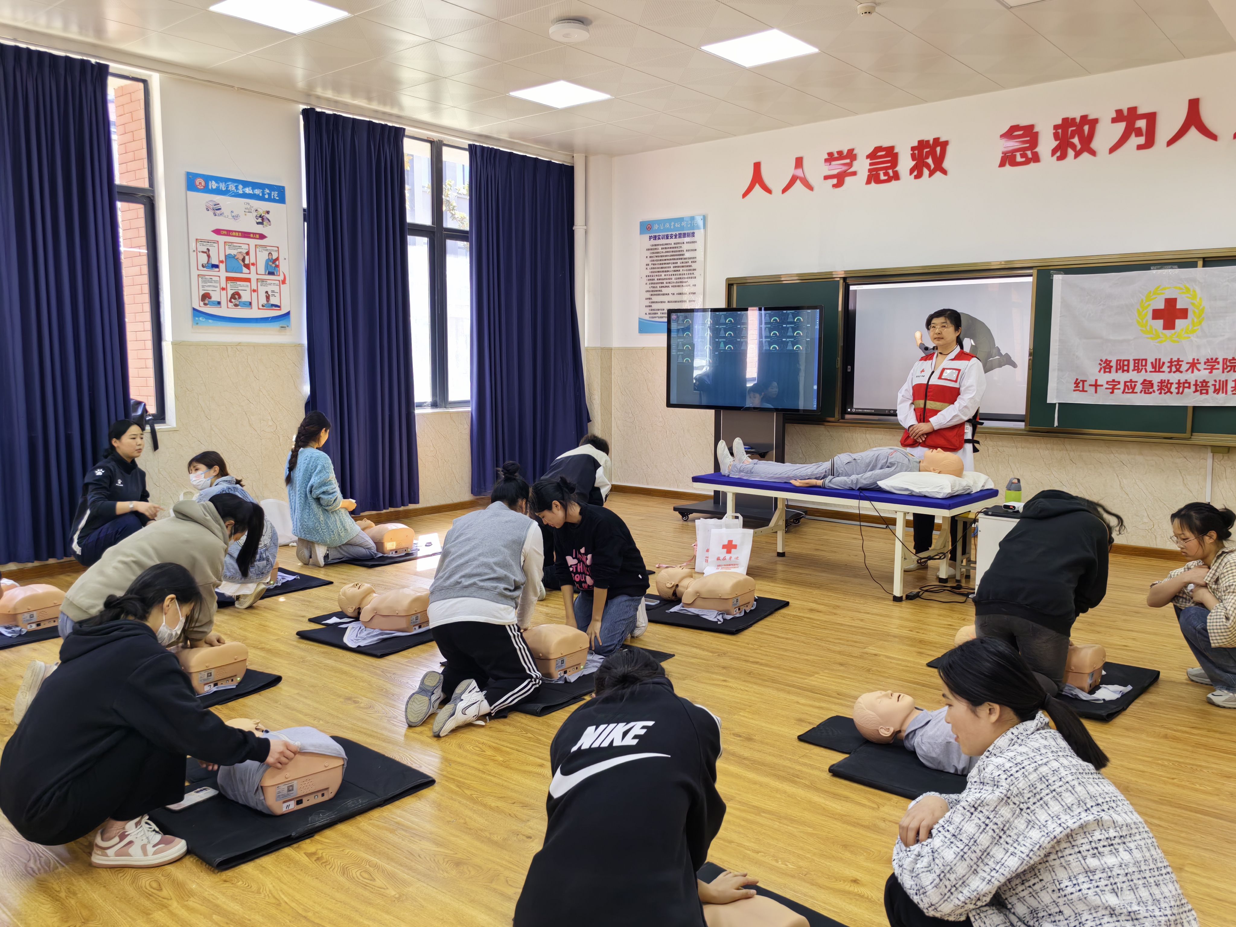 为传承雷锋精神,3月11日—12日,洛阳职业技术学院护理与康养学院、洛阳市红十字会联合开展了2023年第一期“关爱生命救在身边”初级救护员培训。此次培训活动教师采取现场急救理论与演示相结合的方式,用通俗易懂的语言向41名学生详细讲解了心肺复苏和外伤出血包扎固定等初级应急救护核心知识,并利用模拟人演示具体操作方法和动作技巧,手把手指导学员进行实践操作。