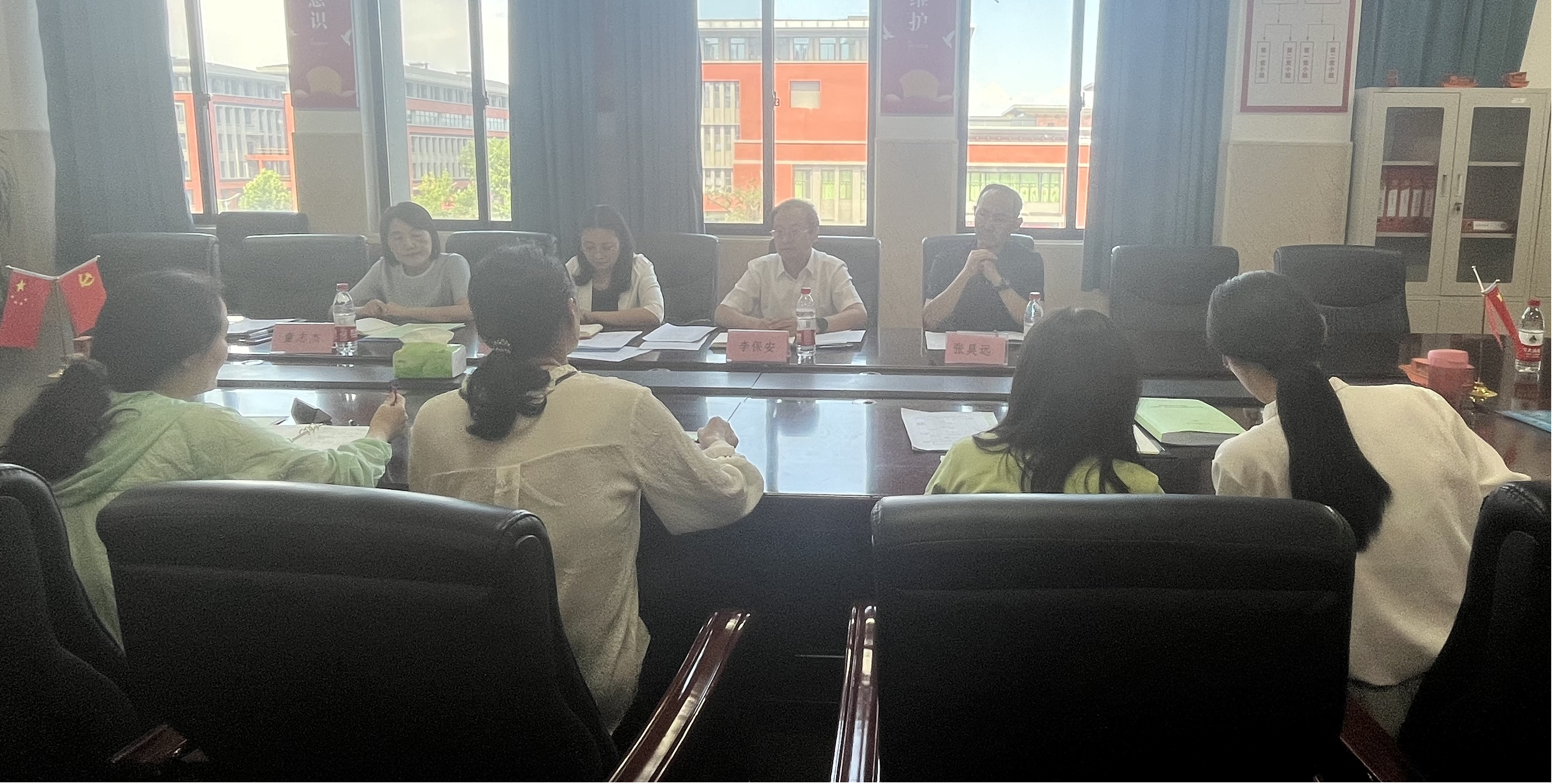 6月13日下午,副校长李保安带领课程中心主任刘晨艳、副主任童志杰、教研科科长(双高校建设办公室主任)张昊远一行四人到护理与康养学院进行工作调研,深入了解教研室设置、健康养老照护国赛筹备、省教学质量抽查准备及双高校建设工作推进等情况,护理与康养学院副院长刘书莲对李保安一行的到来表示热烈欢迎,并和教学科研办公室主任卢华杰、各教研室主任进行了相关工作汇报。