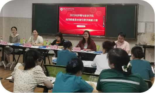 6月14日下午,护理与康养学院在临床技能实训楼310教室举办2023年课堂教学创新大赛暨校级推荐活动,该赛事面向全体教师和日常课堂教学,目的是落实立德树人根本任务、推动课堂教学模式创新,提升教师教学创新能力和内涵建设水平。