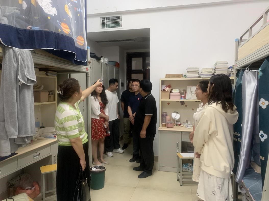9月3日晚,护理与康养学院党总支书记楚继伟,院长张彦芳,党总支副书记刘亚洲,学工办主任周柃楠,团总支书记何成灏及22级辅导员走进学生宿舍,了解学生最新的思想动态和生活状况,并对学生宿舍内部的安全用电、空调使用、卫生状况、安全隐患等内容进行了详细检查。