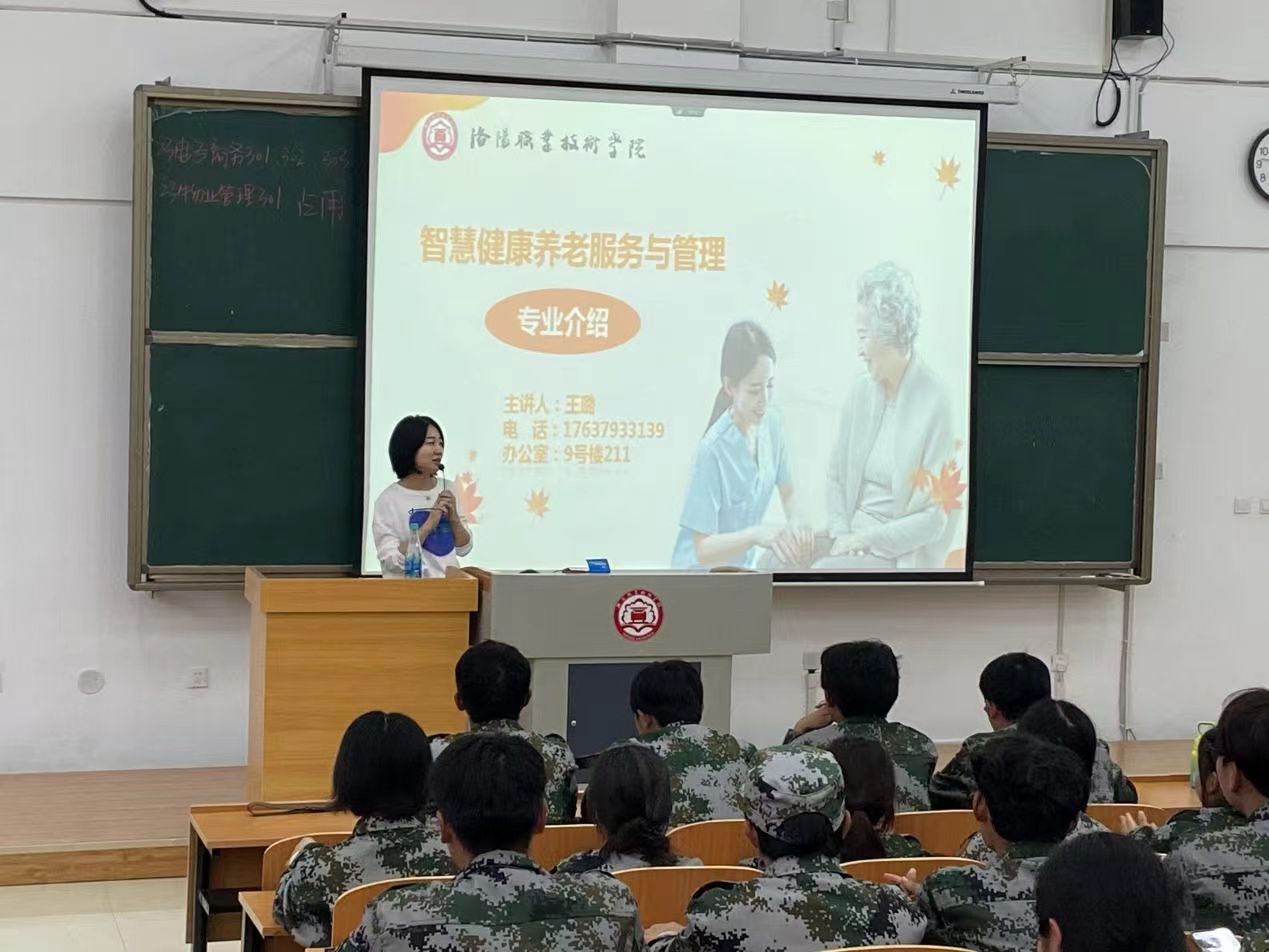 2023年9月121日下午,智慧康养教研室主任王璐为该专业的新生开展了入学教育 讲座,参与讲座的有新进教师杨琳,智慧康养专业辅导员周亚凡和智慧康养专业全体新生。