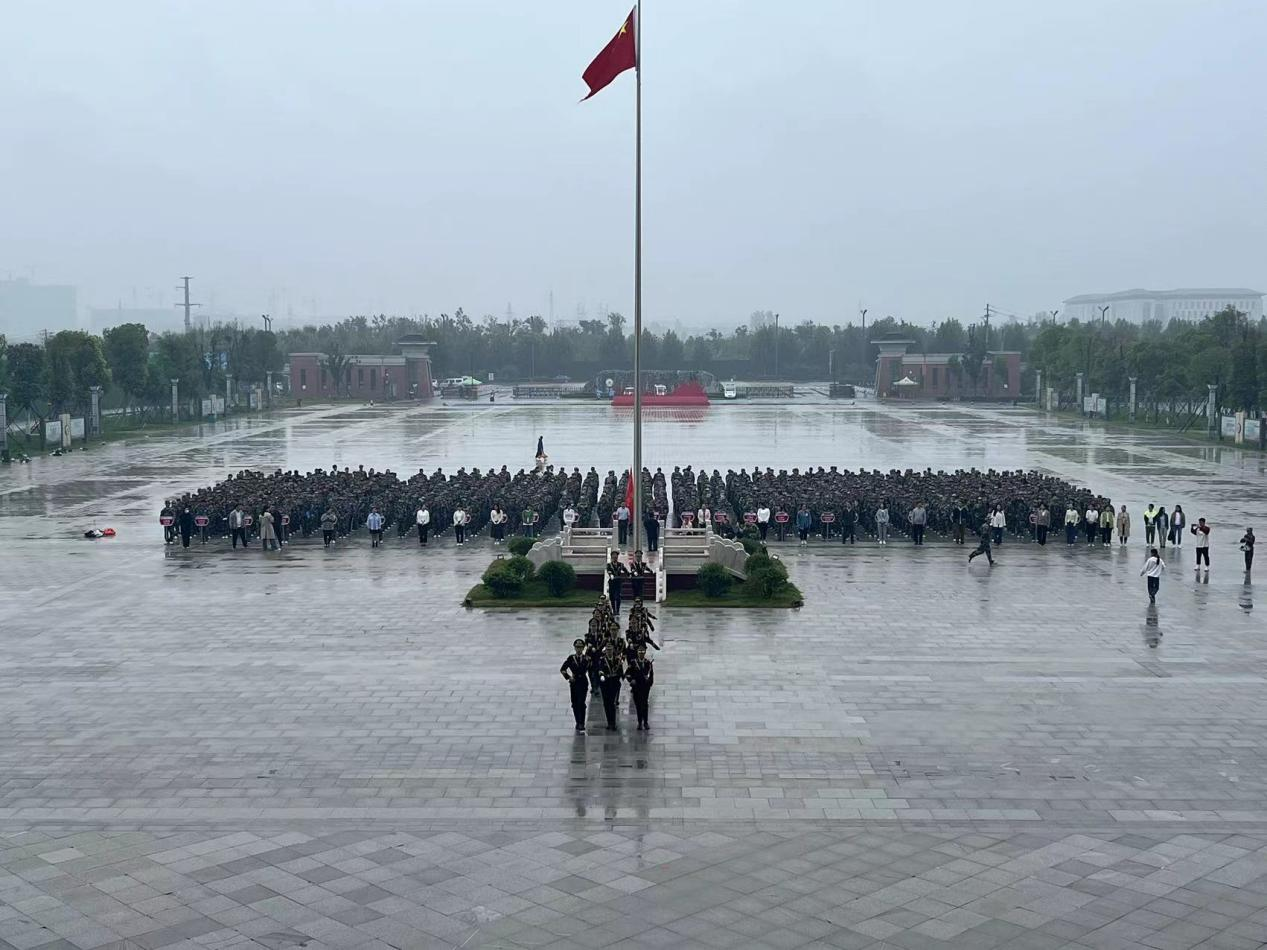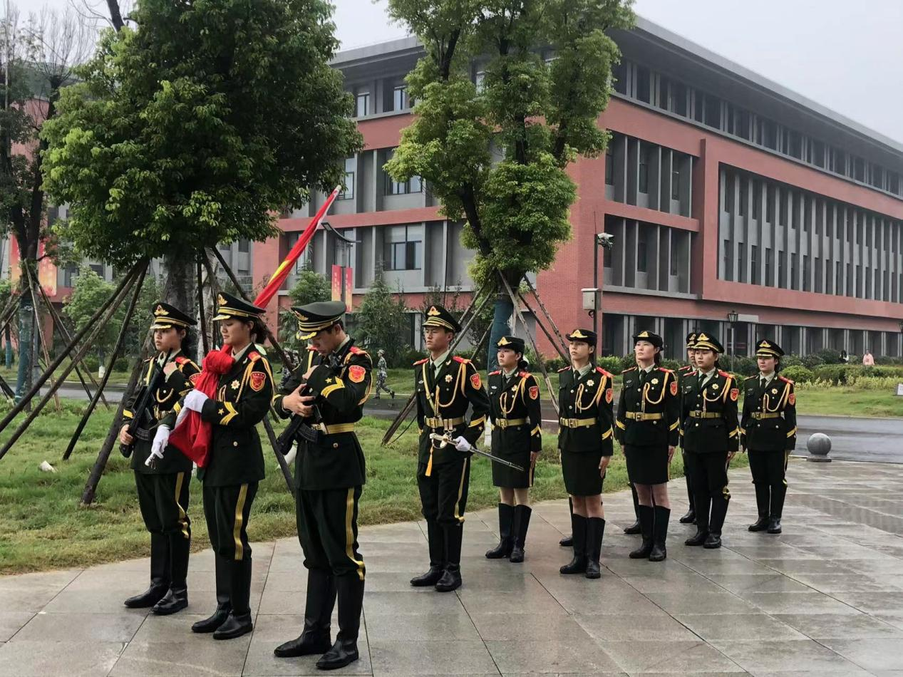 升旗仪式第一项,出旗。国旗护卫队迈着整齐划一的步伐,坚定而有力地前进,铿锵有力的脚步响彻整个广场。
