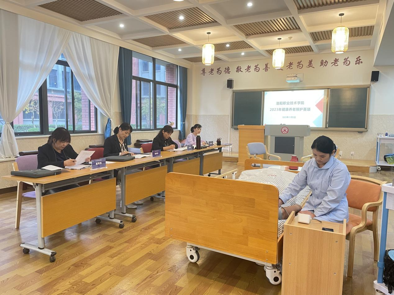 2023年11月3日下午,2023年洛阳职业技术学院学生技能大赛健康养老照护赛项决赛在9号楼举行。大赛特邀护理与康养学院副院长刘书莲、医学院副院长杜学利、医学技术学院副院长申绯霏担任大赛评委。