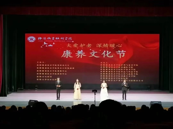 2023年11月9日下午,由洛阳职业技术学院党政办公室、党委宣传统战部、教师中心、课程中心、学生中心(校团委)、洛阳市民政局、洛阳市伊滨区民政局主办,洛阳职业技术学院护理与康养学院、基础医学院、医学技术学院、食品与药品学院、文化与旅游学院、戏曲艺术学院、校医院、江苏中皓养老产业有限公司洛阳分公司共同承办的2023年洛阳职业技术学院第一届康养文化节在戏曲艺术中心隆重举行,本次康养文化节的主题是“大爱护老,深情暖心”。洛阳职业技术学院党委副书记任晓平、副校长张志友、护理与康养学院党总支书记楚继伟、护理与康养学院院长张彦芳、学生中心副主任温慧芳、洛阳市养老服务中心主任高丁,副主任姬雷雷,干部高刘玉、洛阳市伊滨区民政局副局长耿晓洁等领导以及全校各二级学院、天工书院师生代表参与本次活动。