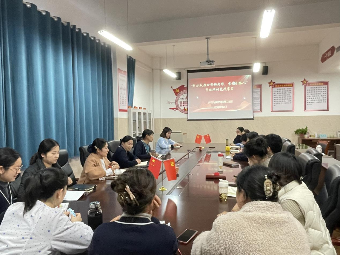 教工党支部书记刘书莲同志组织党员同志们围绕“努力成为四有好老师,当好引路人”进行交流研讨。在老师们积极热烈的谈论和交流后大家都感触颇深,为自己作为人民教师而感到幸福和光荣,立志在以后的职业生涯中立德树人、不忘初心、潜心育人。