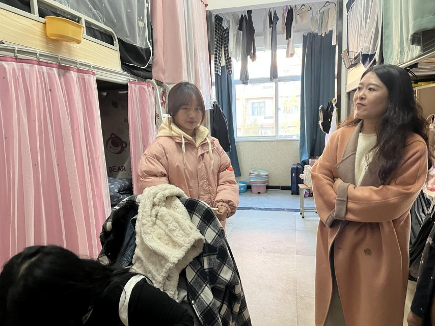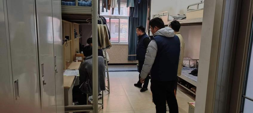 在宿舍检查中,学院领导和辅导员对学院宿舍进行全面检查,查看宿舍环境卫生和安全状况,与学生交谈交流。