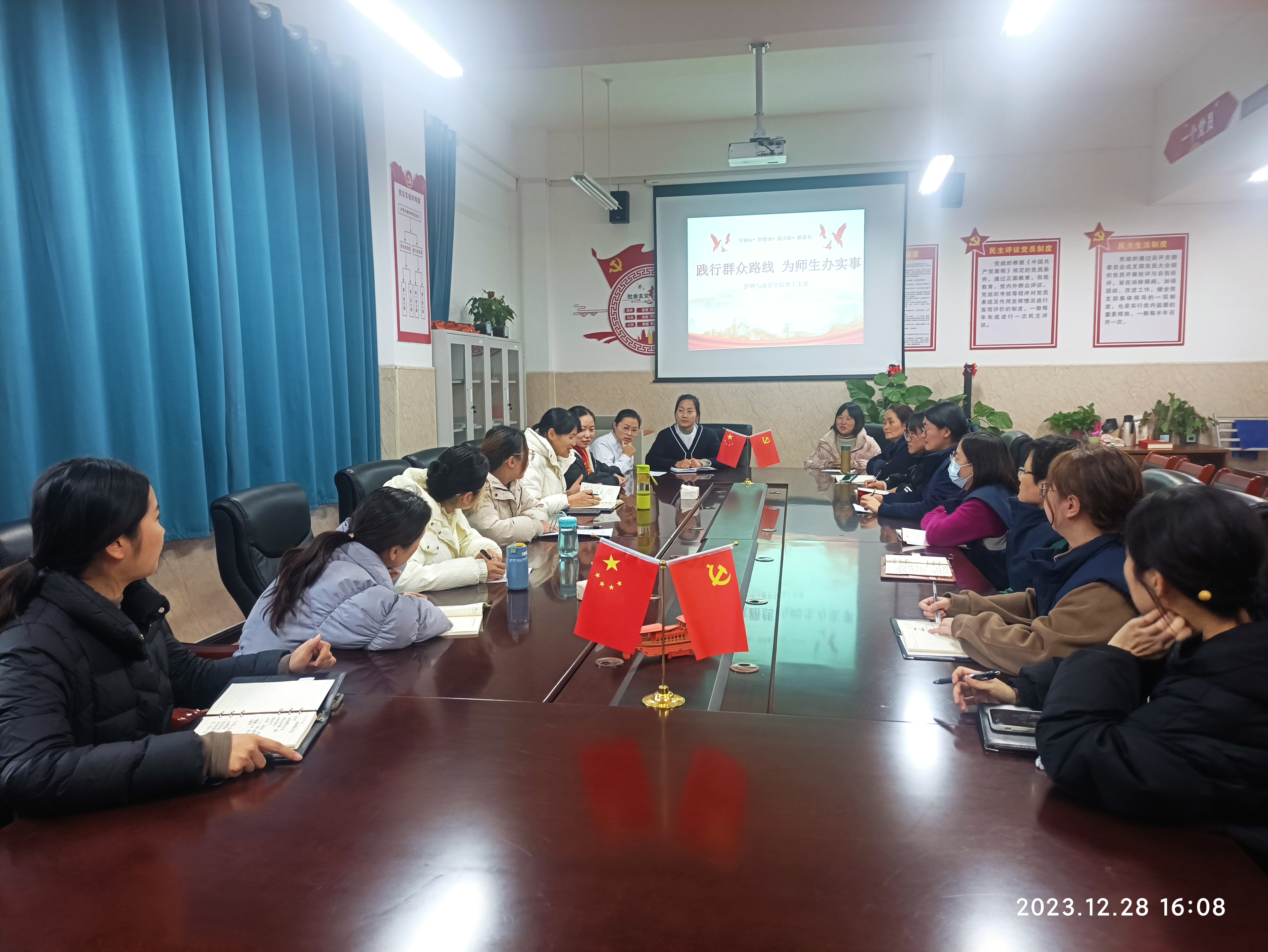 为注重党史学习教育成果转化,更好继承发扬党的优良传统,牢固树立以师生为中心的服务理念,切实为师生办实事、办好事,不断提升广大师生的获得感、幸福感、安全感,2023年12月28日,护理与康养学院教工党支部全体党员在支部党建活动室以“认真践行群众路线,我为师生办实事”为主题开展交流研讨会,支部书记刘书莲主持会议,学院全体党员教师参加。