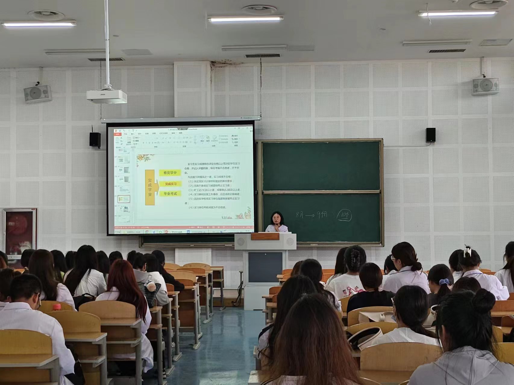 李静主任就实习内容、实习要求、实习过程中可能遇到的安全问题、针刺伤等方面进行了详细讲解,深入浅出地阐述了实习的重要性和必要性,让同学们对即将到来的实习生活有了更加清晰的认识和了解。