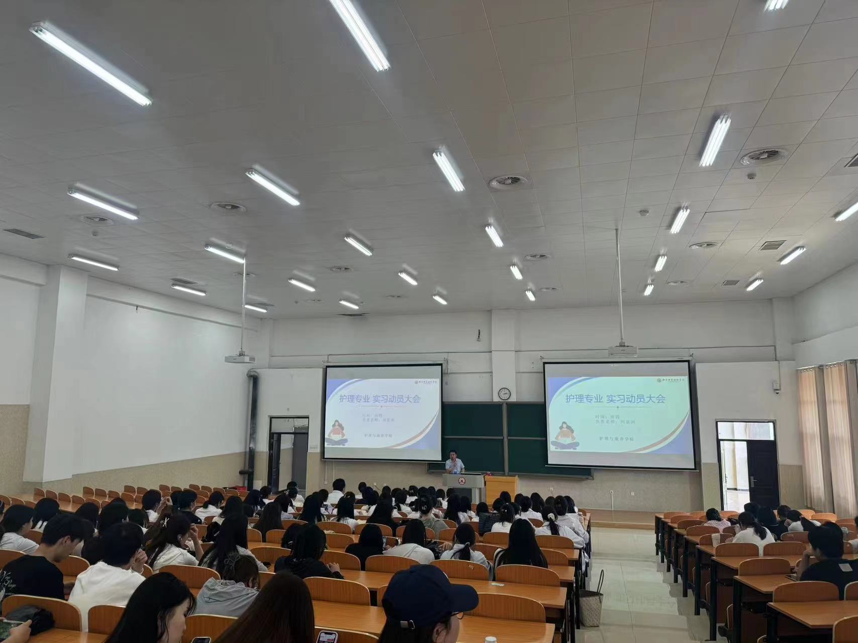 根据专业人才培养方案规定,践行专业实践教学计划要求,为顺利开展2022级护理专业学生实习工作,帮助学生更好理解和准备实习工作,加强实习教学管理,确保14+4教学改革及第六学期综合提升工作顺利开展。2024年5月23日下午,我院于4-207、9-509、5-410召开2022级护理专业学生实习动员大会,部署实习各项事宜,加强同学们对实习的重视。王芳院长、刘亚洲书记、卢华杰主任、李静主任及辅导员老师参加。