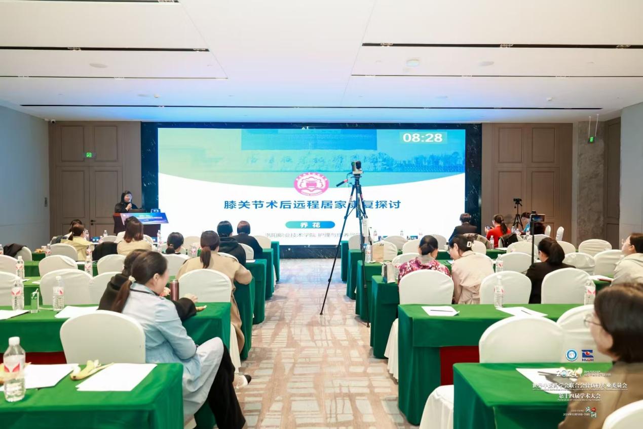 我院教师乔花受邀在康复护理分会场做《膝关节术后远程居家康复探讨》专题发言,河南省洛阳正骨医院李海婷教授给予了充分认可。她的发言指出,随着5G技术的普及和人工智能在康复领域的应用,远程居家康复护理有望实现更高效的数据传输、更精准的评估与方案制定,为患者提供更便捷、高效的康复护理服务。远程居家康复为护理模式创新带来诸多启示,利用科技实现远程监测与指导,促使护理向智能化、个性化发展,为护理同仁们在远程居家康复护理的发展前景提出新的思路。