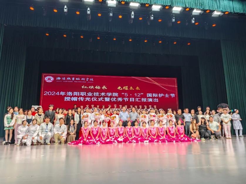 5月9日下午,由洛阳职业技术学院党委宣传部、课程中心、学生中心(校团委)主办,护理与康养学院承办的2024年洛阳职业技术学院“5·12”国际护士节授帽传光仪式暨优秀节目汇报演出在戏曲艺术中心隆重举行,本次活动的主题是:红烛传承,光耀未来。洛阳职业技术学院校长李保安、党委副书记任晓平、副校长韦元民、副校长余江宁、副校长张志友,校领导邓卫国、副校长刘航、校领导于幸福等领导以及护理与康养学院师生代表参与本次活动。