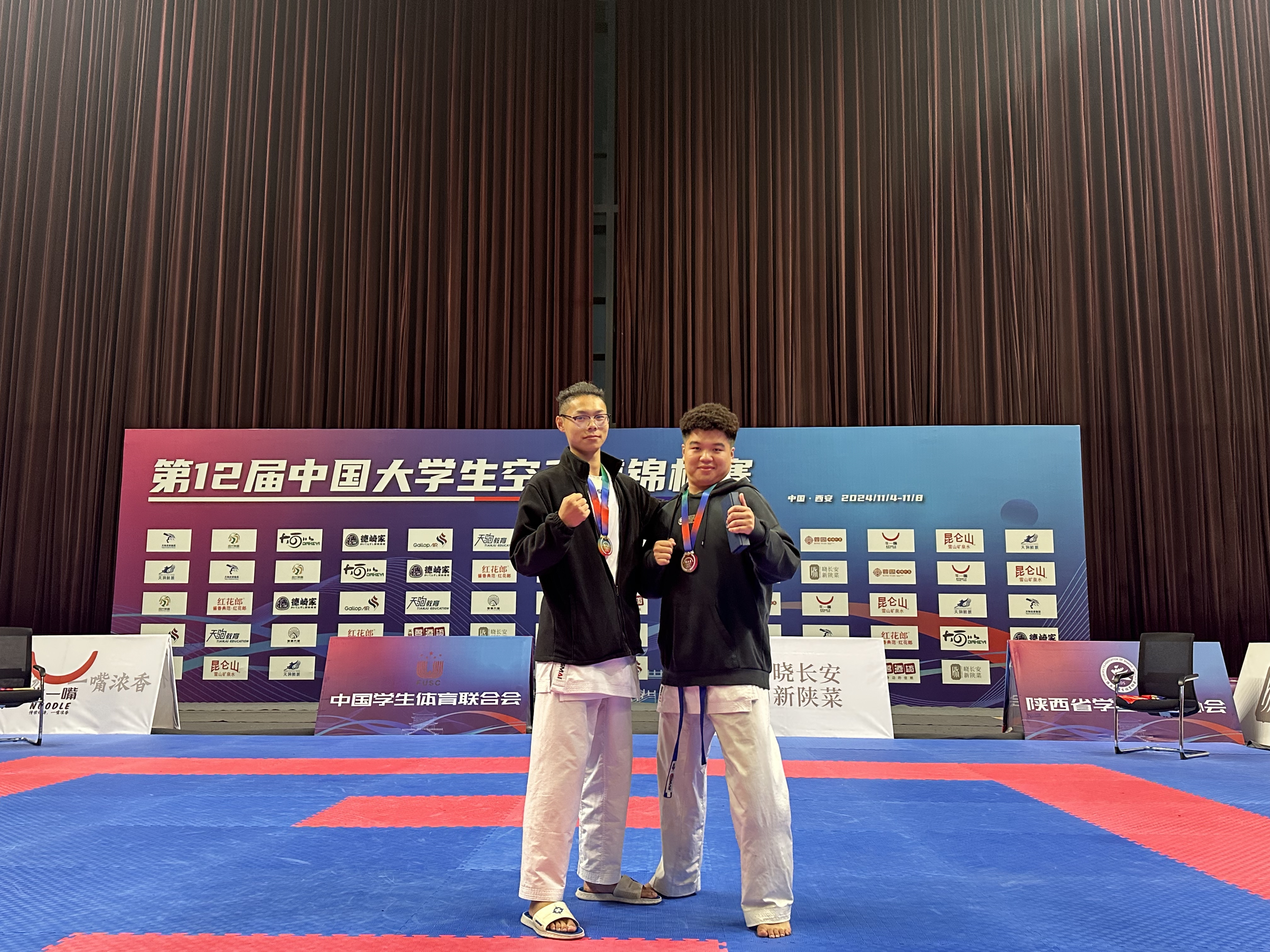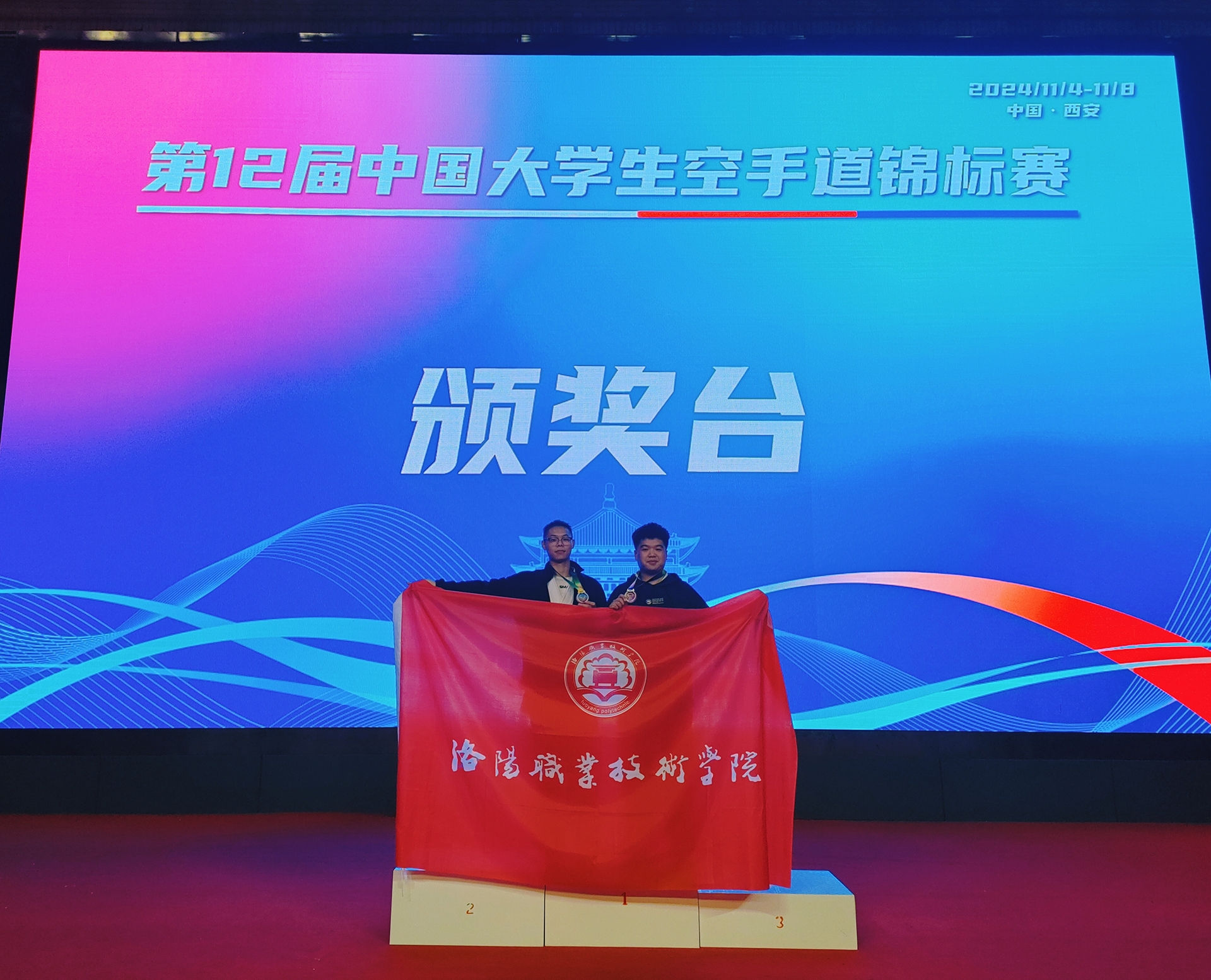 11月4日—11月8日,第十二届中国大学生空手道锦标赛在西安外国语大学盛大举行。经过一场场激烈角逐,洛阳职业技术学院代表队荣获一枚金牌和一枚银牌。这是继世界职业院校技能大赛护理与康养学院学子斩获两金后,在全国赛项中获得的第三金、第一银。也是护理与康养学院体育保健与康复专业收获的第一枚宝贵金牌和首银。