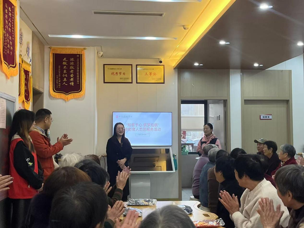 11月13日上午,杨佳怡、何成灏、王岩岩、高慧颖老师带领受助学生及小火星帮帮团赴兰台嘉苑乐养居开展志愿服务活动,旨在通过多元服务形式,培育青年学子的社会责任感与奉献精神,传递温暖和爱的正能量。何成灏向老人们表达了问候,介绍本次活动,和老人们进行了亲切的互动。