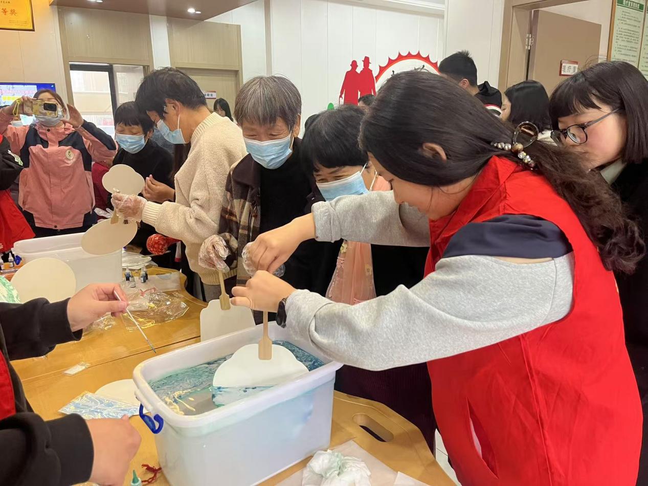 志愿者们耐心地讲解漆扇制作方法,带领老人们做出了一面面生动鲜艳的漆扇,为老人们带去了欢笑与慰藉,传承了中华民族尊老爱幼的传统美德,让尊老之风蔚然成风。