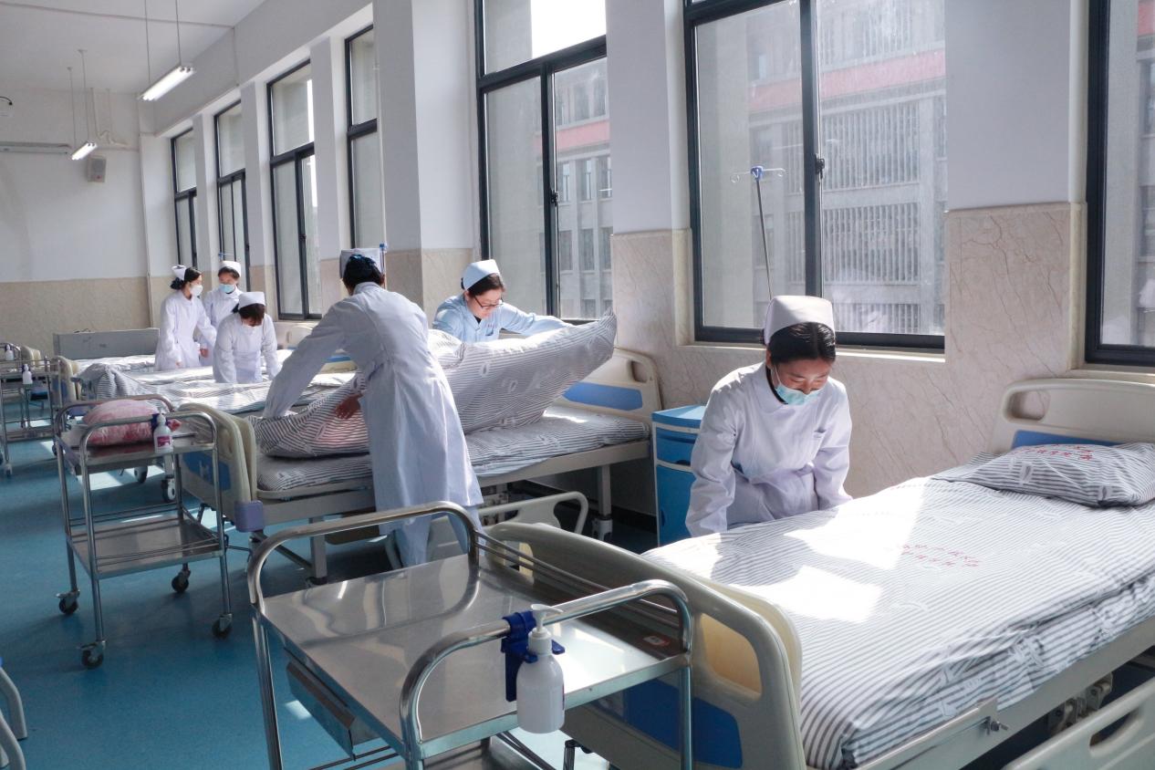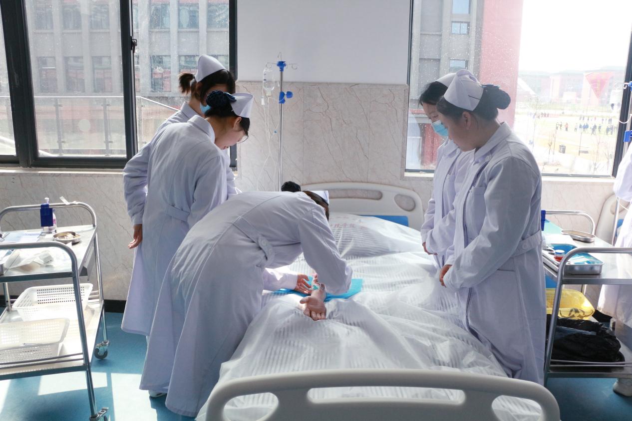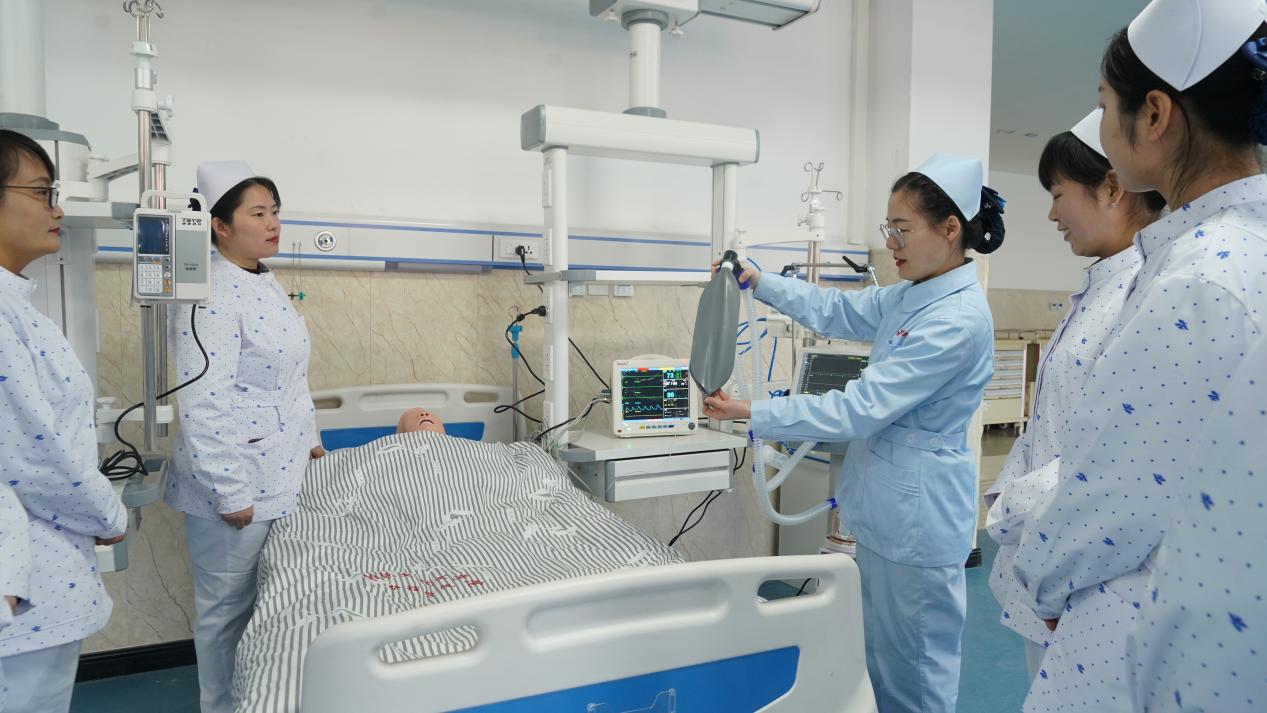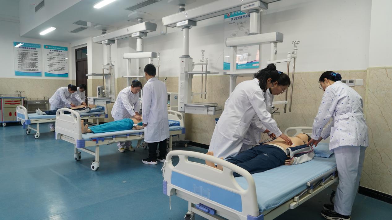 病患照护中心4000余平方米,是“洛阳市职业学校专业实训平台”“河南省高等职业教育示范性实训基地”,中心模拟医院的布局和功能分区,设有护士站、模拟病房、技能训练室、急救训练室、重症监护室等15个实训室。所有实训室都是模拟医院病区设置的,主要是营造一个医院的氛围,让学生感觉进到实训室就像进到医院一样。模拟病房及技能训练室可进行各类注射、导尿、鼻饲、口腔护理等技能项目的训练、技能竞赛、职业技能培训及评定;急救训练室可用于CPR急救、电除颤、模拟输液泵训练等;重症监护室可进行急救和重症监护病例的模拟训练。