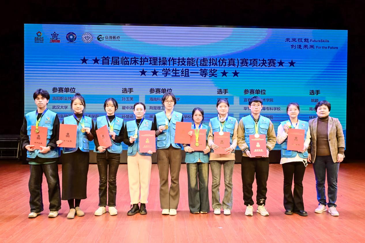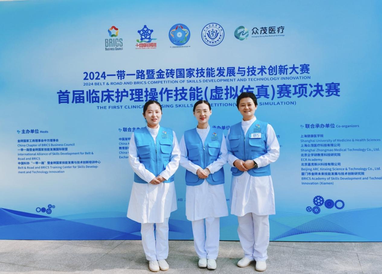 12月8日,一带一路暨金砖国家技能发展与技术创新大赛之首届临床护理操作技能(虚拟仿真)赛项决赛在上海健康医学院圆满闭幕。护理与康养学院22级护理专业315班同学孙玉美荣获学生组一等奖第一名,教师刘晶晶、张玉晶、李静团队荣获教师组一等奖,301班张亚婷和307班郭嘉琳均获学生组二等奖。同时,学校囊括了学生组及教师组最佳组织奖、优秀组织奖4项团体奖,8个奖项彰显了我校专业建设与职业教育改革的重要成就。