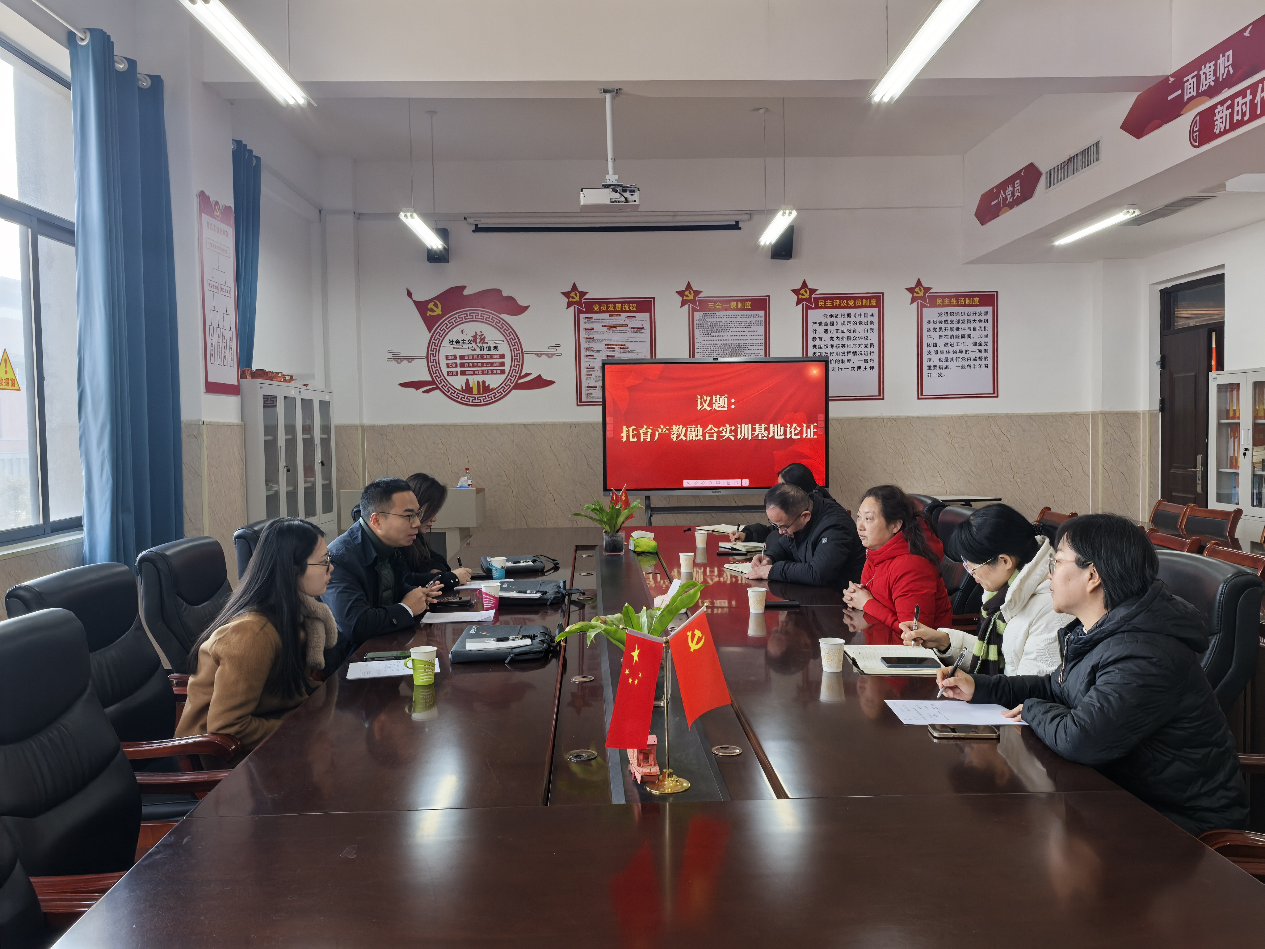 12月25日上午,我院邀请托育员主编陈大涛老师、吴蔚蓝老师,洛阳市弘宝森林托育园段靖园长共同探讨产教融合项目基地建设的论证会。